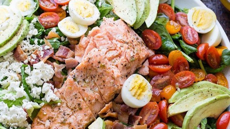 Salmon Cobb Salad with Spinach and Feta, made by @diethood. Follow her right now for more amazing recipes!